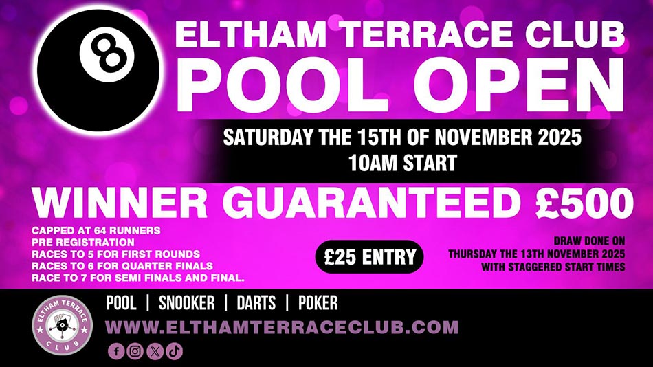 You will appreciate our warm and welcoming atmosphere the moment you walk in! At Eltham Terrace we provide our members with an array of different activities from pool, to poker, to snooker to darts and the best of live sport being shown on our big screens, plus one HUGE projector screen; we have it all to offer.
